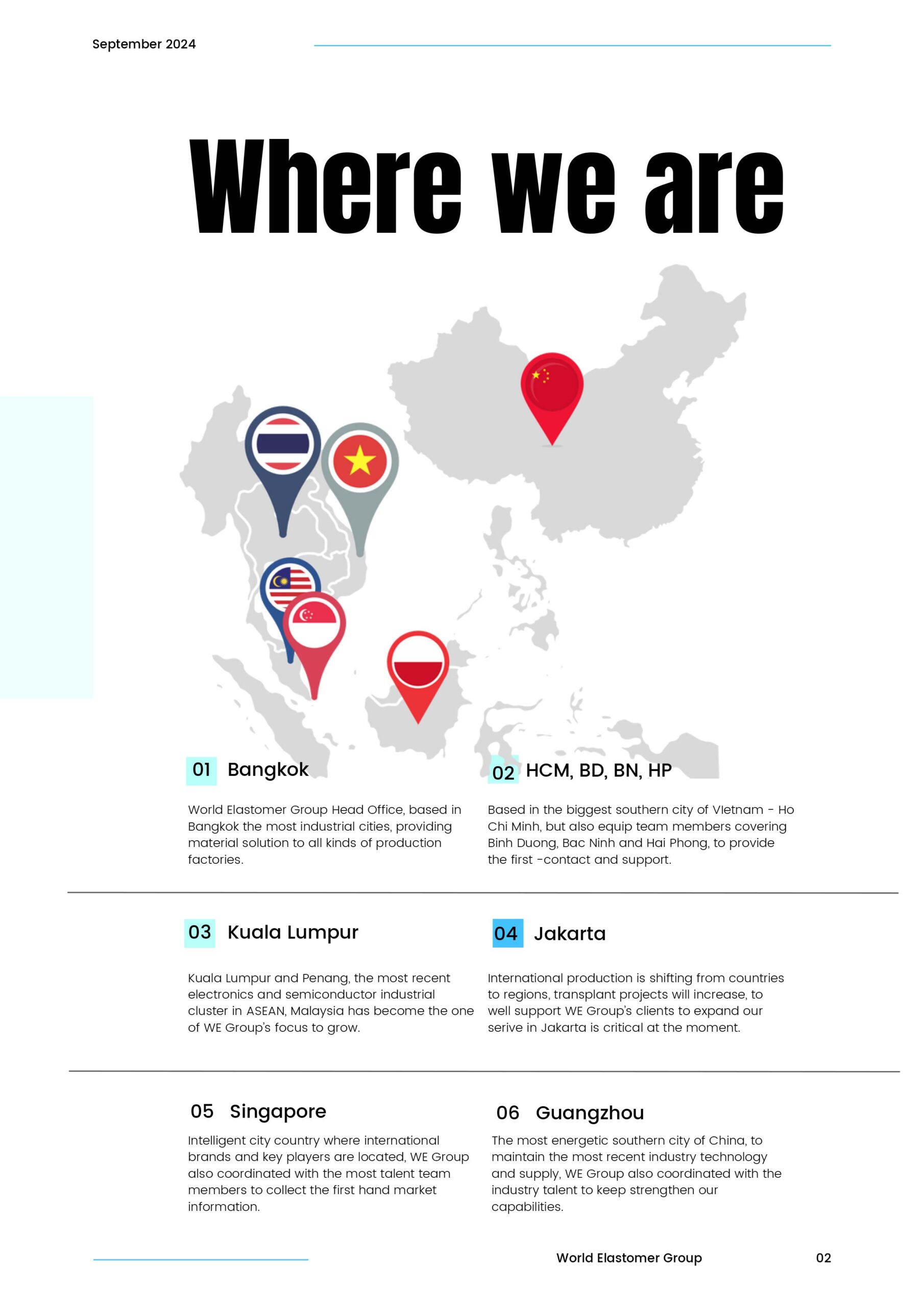 World Elastomer Group (WE), established in 2015 in Bangkok, is ASEAN’s first TPU-focused elastomer provider. With branches in Vietnam, Malaysia, and Indonesia, WE delivers expert solutions, from project development and material consulting to training and technical support. WE Together Achieve More!